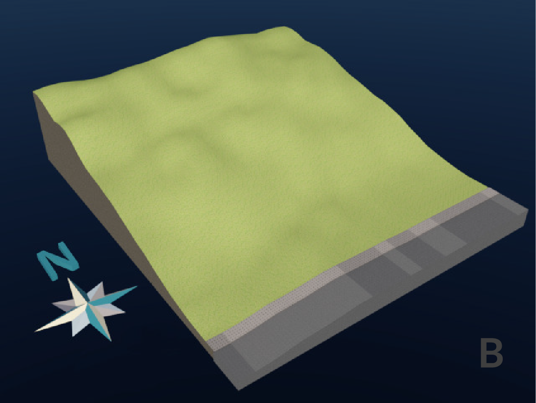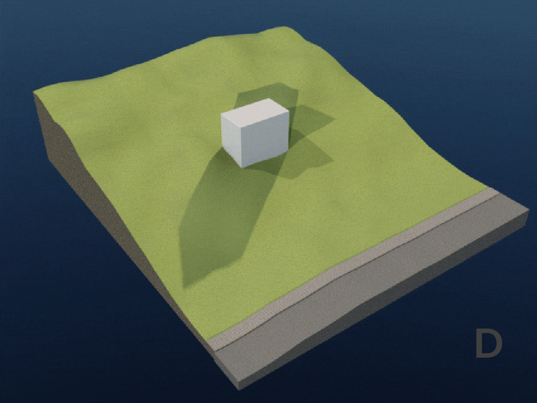 | SimLab used Features: -Annotation Dimensions -Capture Viewer Image -Render Topography -Timeline Key Animation -Sun Analysis Render | Figures: A-Site Dimension & Slope B-Site Direction C- Accessibility D-Sun Study E-Prevailing Wind |