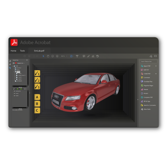 Use SimLab Composer to create interactive 3D views inside pdf files, 3D PDF export software, 3D PDF creator for CAD models